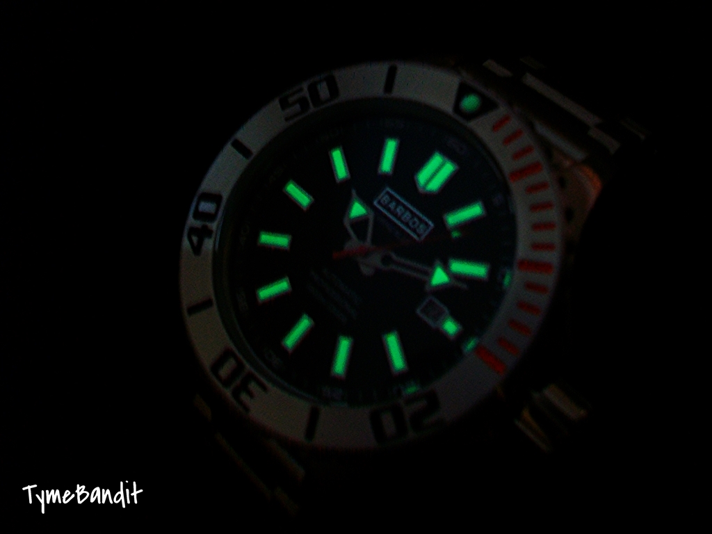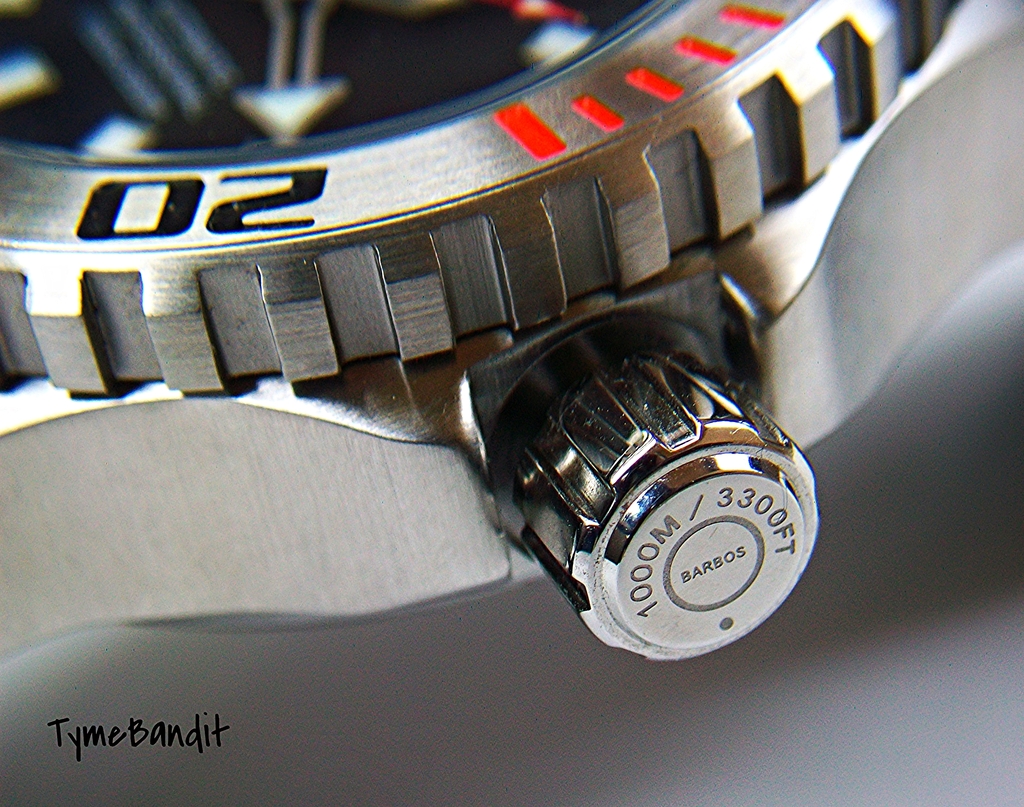 Potapljaska avtomatska ura, trenutno zelo popularna, deklarirano tesni do 1000m, ohisje iz inox 316L (L je za low corrosion), posledicno je tudi zelo tezka (170 gramov, s paskom :shock: ), gre za uro, ki jo poganja dober mehanizem Miyota 8215, mehanizem je "automatic", torej se navija z gibanjem roke, manjso obrabo v mehanizmu pa zagotavlja 21 rubinov, ura prikazuje cas in datum, pasek je silikonski, glede na tezo ure bi lahko bil malo mocnejsi, ura ima ventil za sproscanje tlaka nastalega zaradi npr helija. Nivo izdelave je na visokem nivoju.