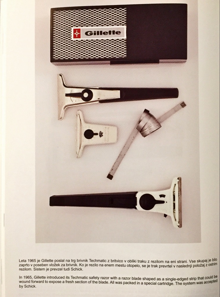 Gre za Gillette Techmatic iz leta 1965.. Na sliki je viden tudi trak ki je bil uporabljen za rezilo..